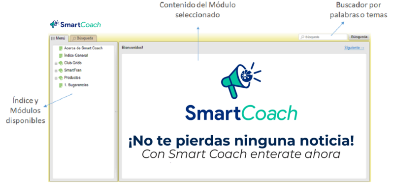 Para ingresar podrás hacer clic en la opción "Consultar Ahora" ó bien podrás hacerlo luego desde el Menú Principal de tu Sistema en la opción "SmartCoach"  haciendo clic en el ícono de la campana.